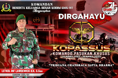 Komandan Kodim 1305/BT Mengucapkan Dirgahayu Komando Pasukan Khusus KOPASUS, 16 April 1952 - 16 April 2023 "Tribuana Chandraca Satya Dharma"